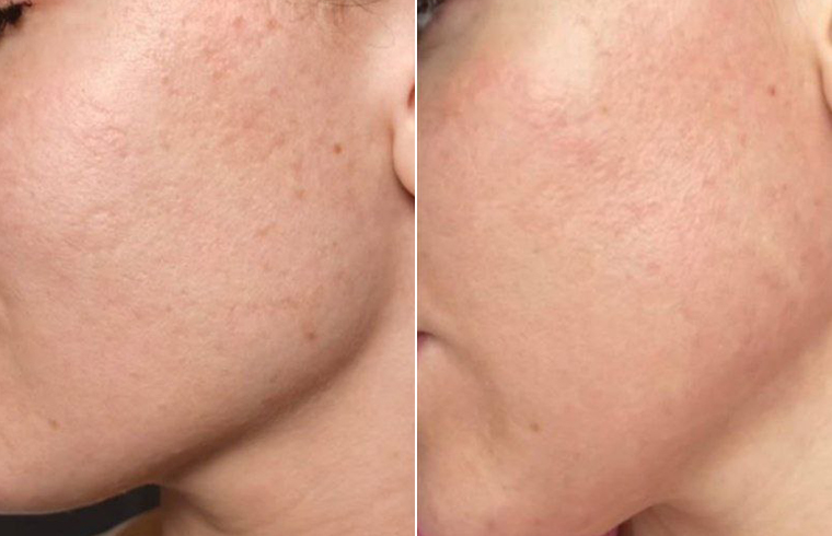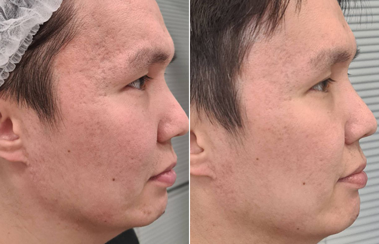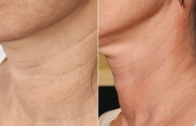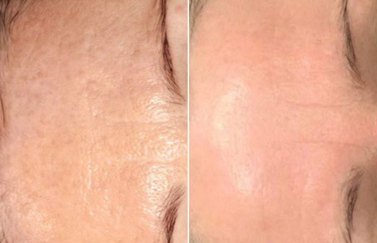 Через месяц: подтянутая упругая кожа, более ровный рельеф и значительное сокращение морщин